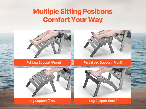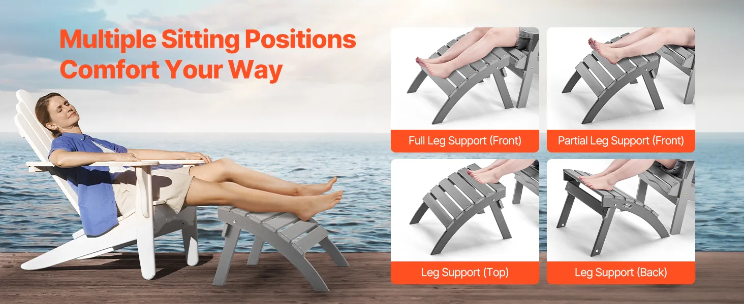 Our Adirondack foot stool provides various seating options, providing comfortable leg support. With adjustable settings, you can easily find a comfortable position to enjoy your outdoor relaxation.