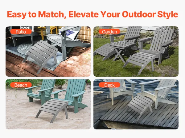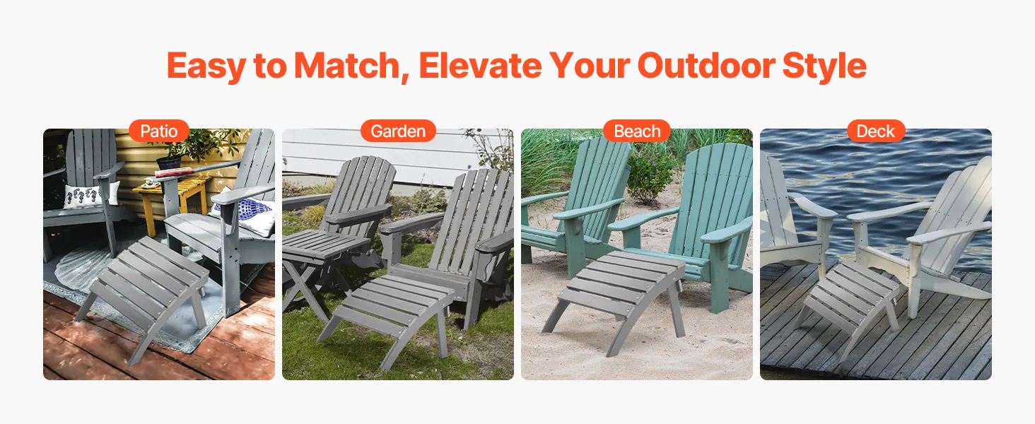 Classic Adirondack Style: This folding Adirondack Ottoman features a timeless design, made specifically for Adirondack chairs. It’s ideal for various outdoor spaces, such as patios, porches, backyards, gardens, lawns, and decks—wherever you desire.