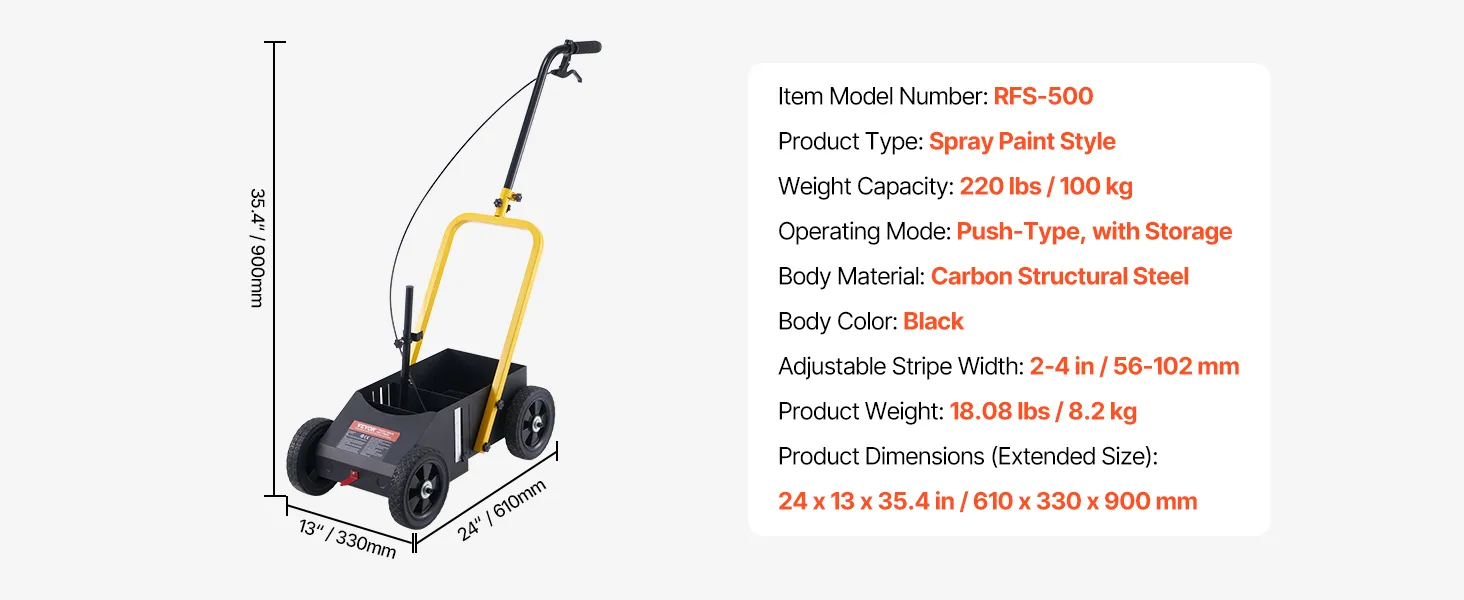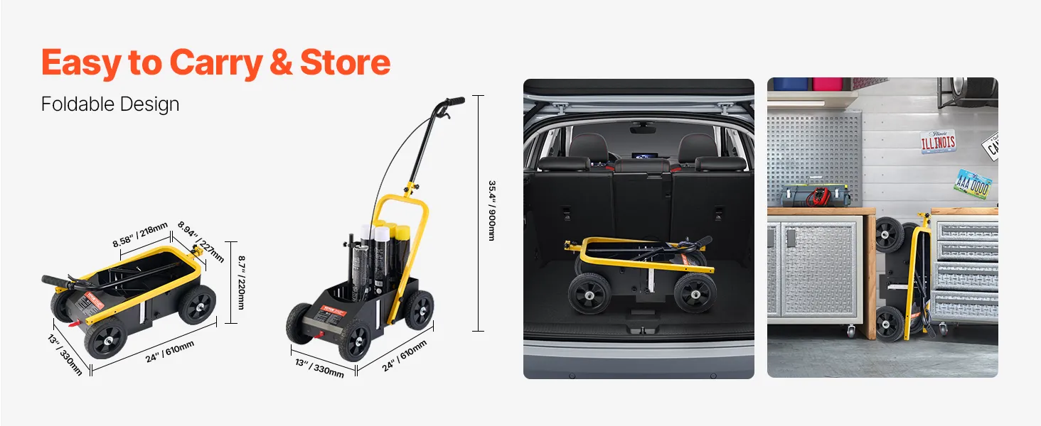 Suitable for Multiple Scenarios: This heavy duty striping line marking machine can be used in parking lots, warehouses, sports fields, and more. It is suitable for various ground materials such as asphalt, concrete, and grass. The foldable design makes it easier to carry and store.