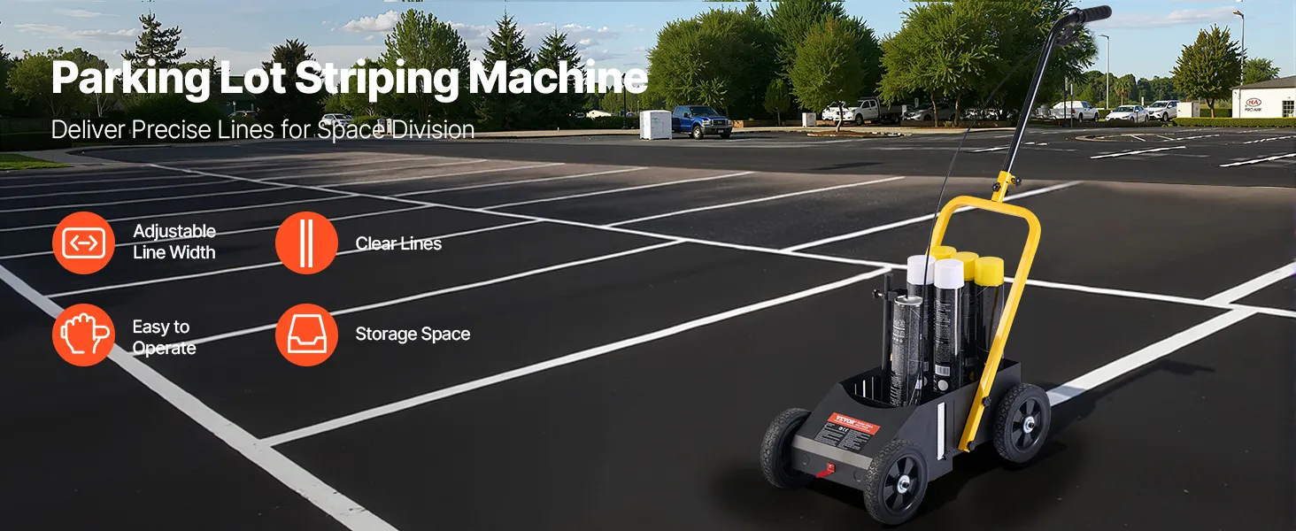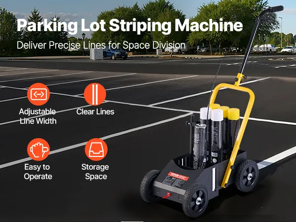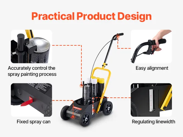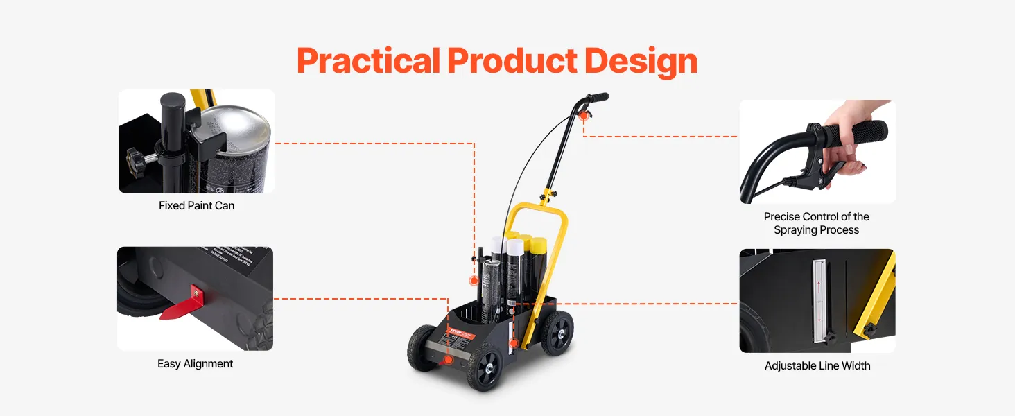 This striping line marking machine features an adjustable line width design, catering to different project needs. It delivers clear and precise lines, is easy to operate, and comes with convenient storage space, making it the ideal choice for line marking tasks.