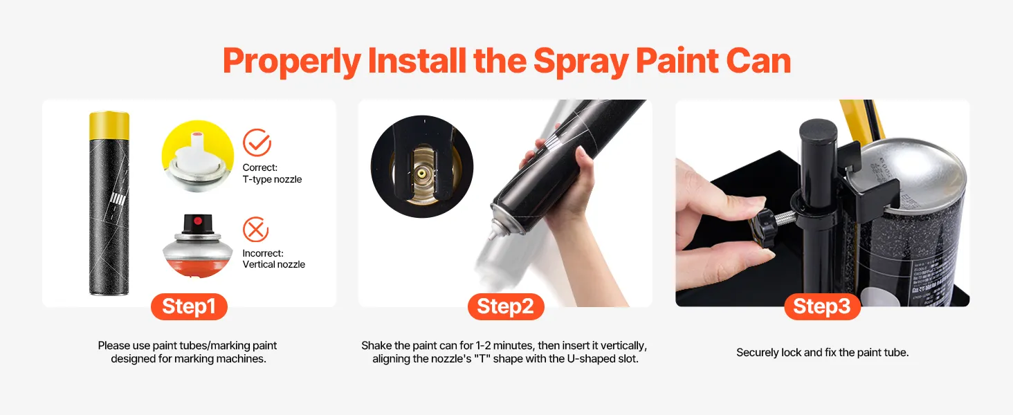During the installation process, choose the correct spray paint can with the appropriate nozzle, and follow the instructions to position it correctly. This will help you achieve clean and complete lines while using the parking lot striping machine.