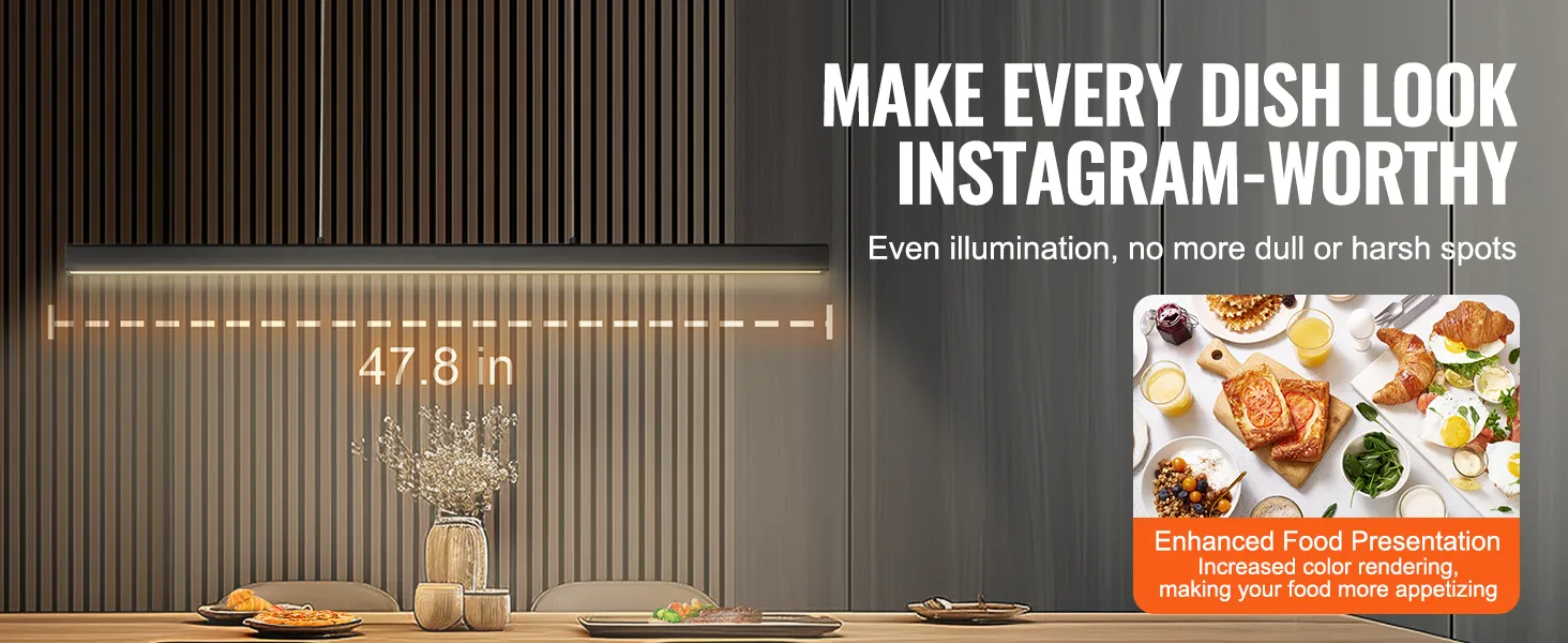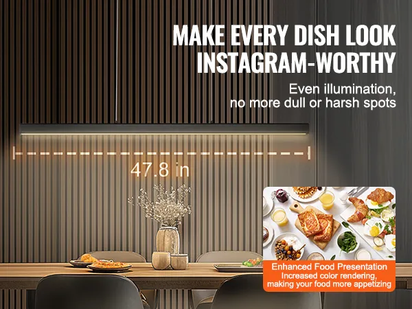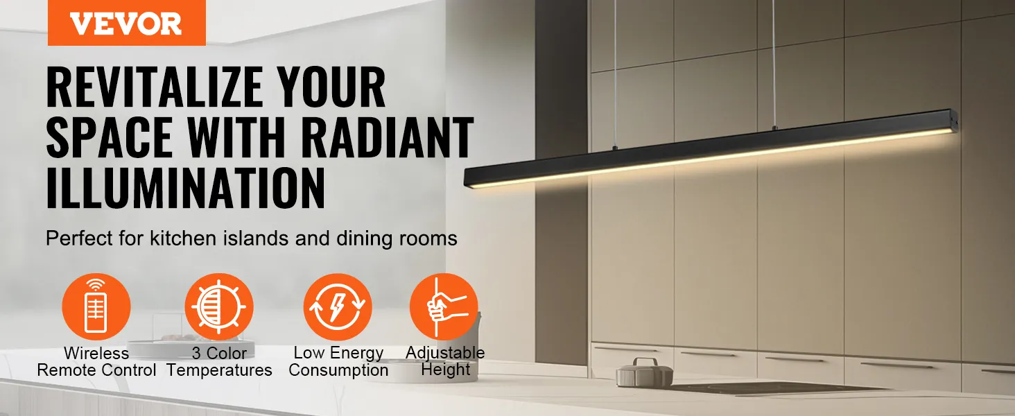 Enjoy a broad illumination range with wireless remote control, supporting color temperature adjustments (3000K-6000K) and brightness levels. Featuring premium metal light body and acrylic lampshade, our light is perfect for culinary masterpieces or lively family gatherings!