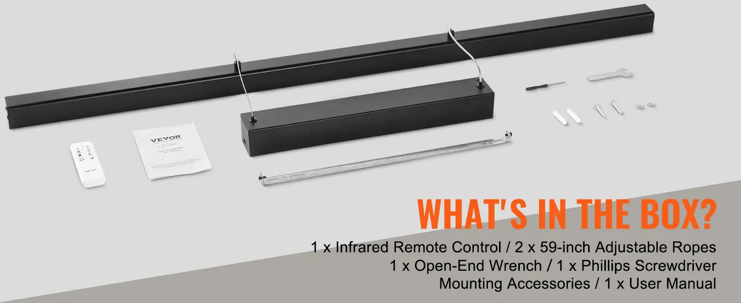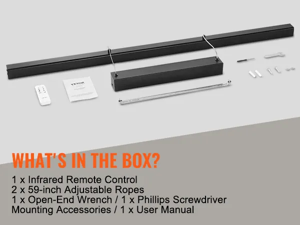 Flexible Installation for Any Ceiling: Our linear light fixture comes with 2 adjustable 59 in (1.5 m) ropes, making height adjustments a breeze. Simply press the black button to connect the wire to the lampshade and customize the height to fit various ceiling heights and types. Adapt it to your room’s unique layout and create a distinctive lighting effect. (Rest assured, the ropes are fully capable of supporting the light fixture’s weight.)