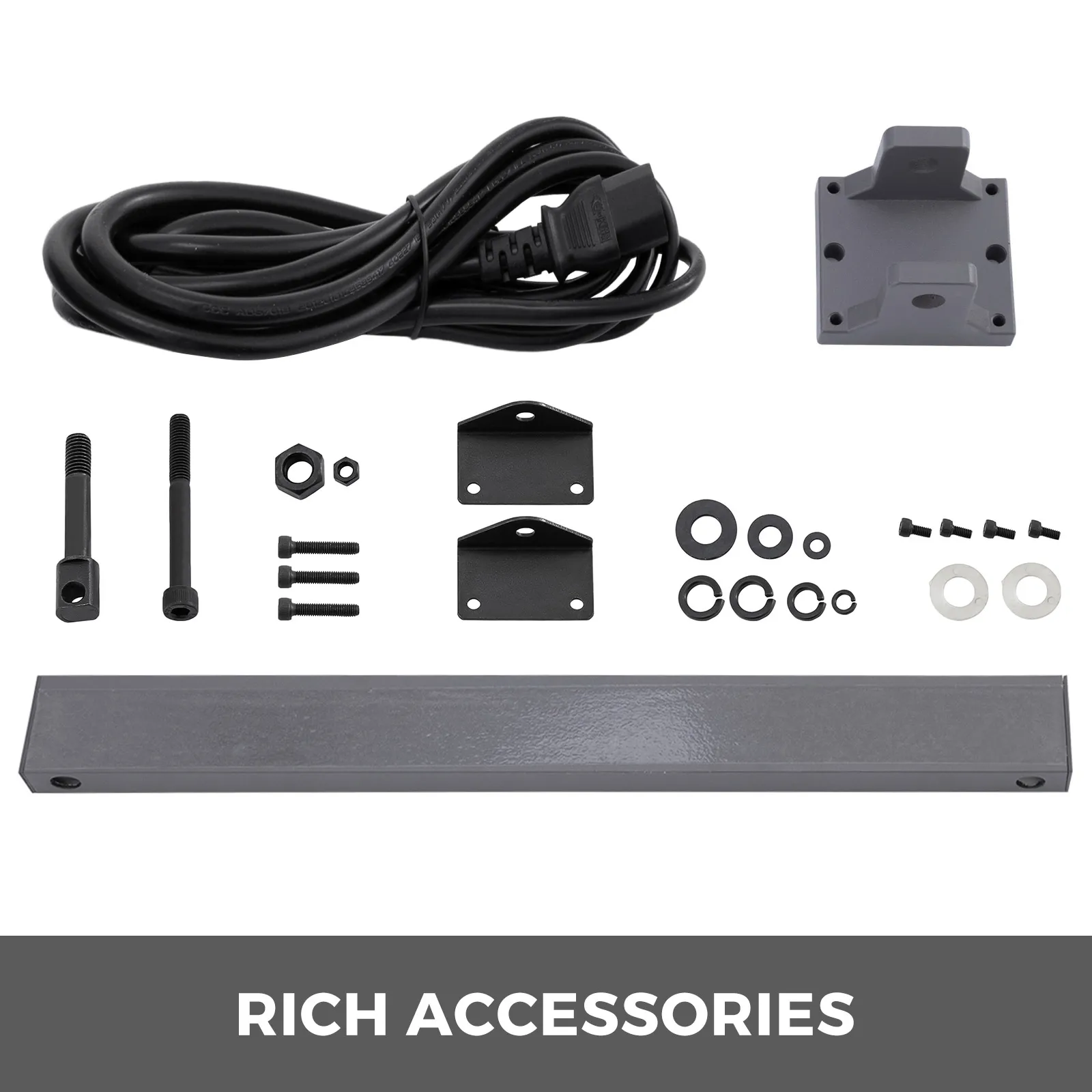Voor eenvoudige installatie en bediening worden twee beugels en een set schroeven gratis meegeleverd. Er wordt ook een kabel meegeleverd in de verpakking.