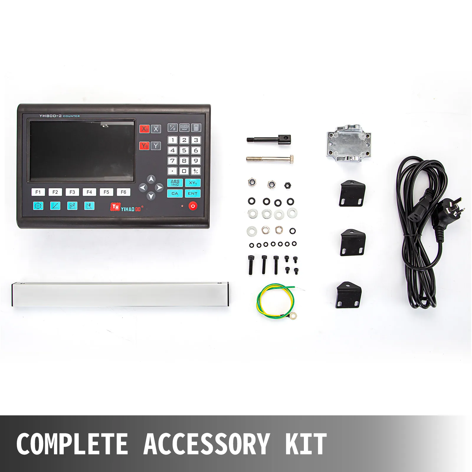 De digitale uitlezing van de draaibank heeft twee beugels, een schroefset en een kabel die u gemakkelijk kunt installeren en efficiënt kunt bedienen.