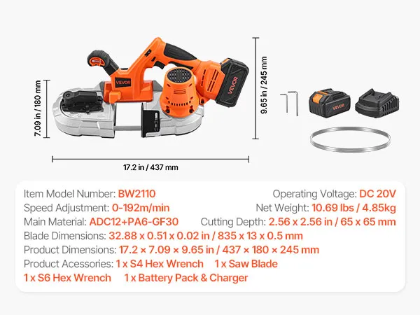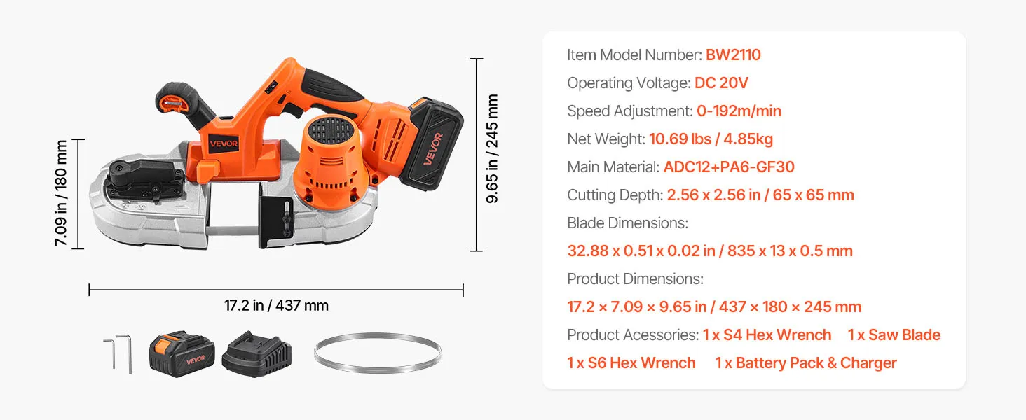 LED-verlichting, nauwkeurig zagen: Deze draagbare lintzaag met LED-zichtverlichting verlicht donkere werkoppervlakken en biedt u een helder, nauwkeurig zicht voor nauwkeurig zagen. Geschikt voor werkplaatsen, bouwplaatsen en diverse bouwomgevingen.