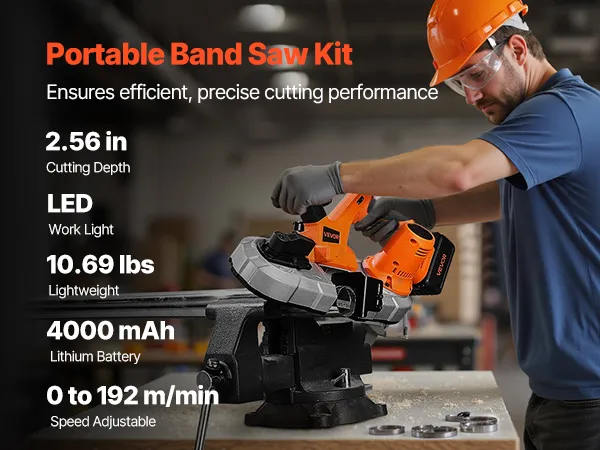 Variabele snelheid van 0 tot 192 m/min: Met de traploze instelknop kunt u de snelheid eenvoudig aanpassen aan specifieke materialen en toepassingen. Deze draagbare lintzaag zaagt snel en efficiënt door staal, aluminium, kabels, hoekijzer, PVC-buizen en meer.