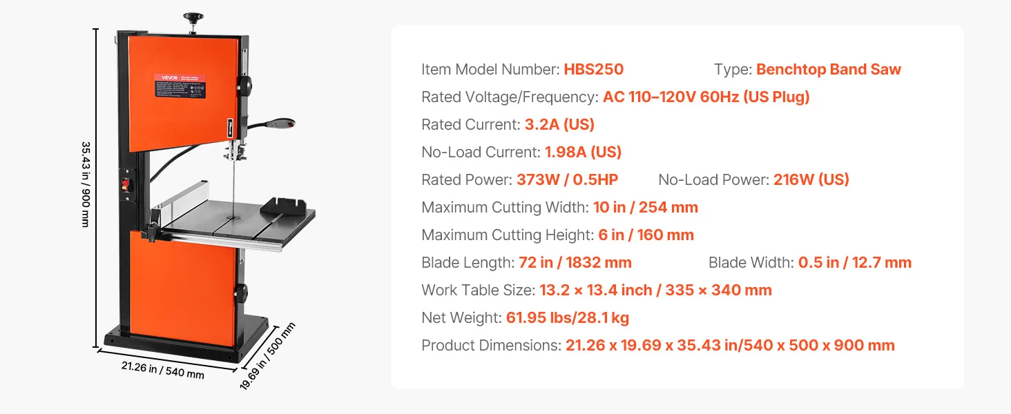 Solid & Stable Worktable: Our tabletop bandsaw is built to last with a cast iron table that resists wear, pressure, and vibration. Delivers excellent stability and cutting precision, keeping every cut steady and controlled