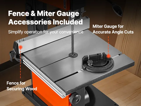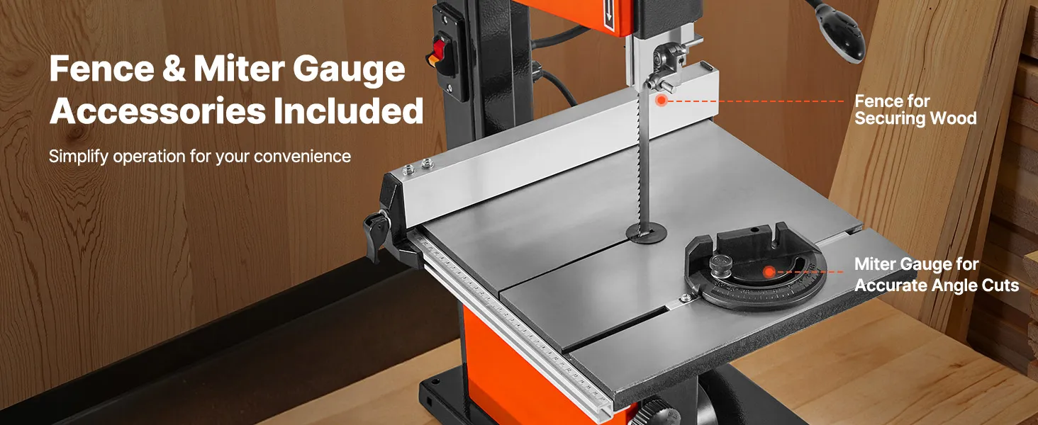 Essential Accessories Included: Comes standard with a fence and miter gauge, this wood working bandsaw boosts your cutting precision and overall efficiency for every woodworking project