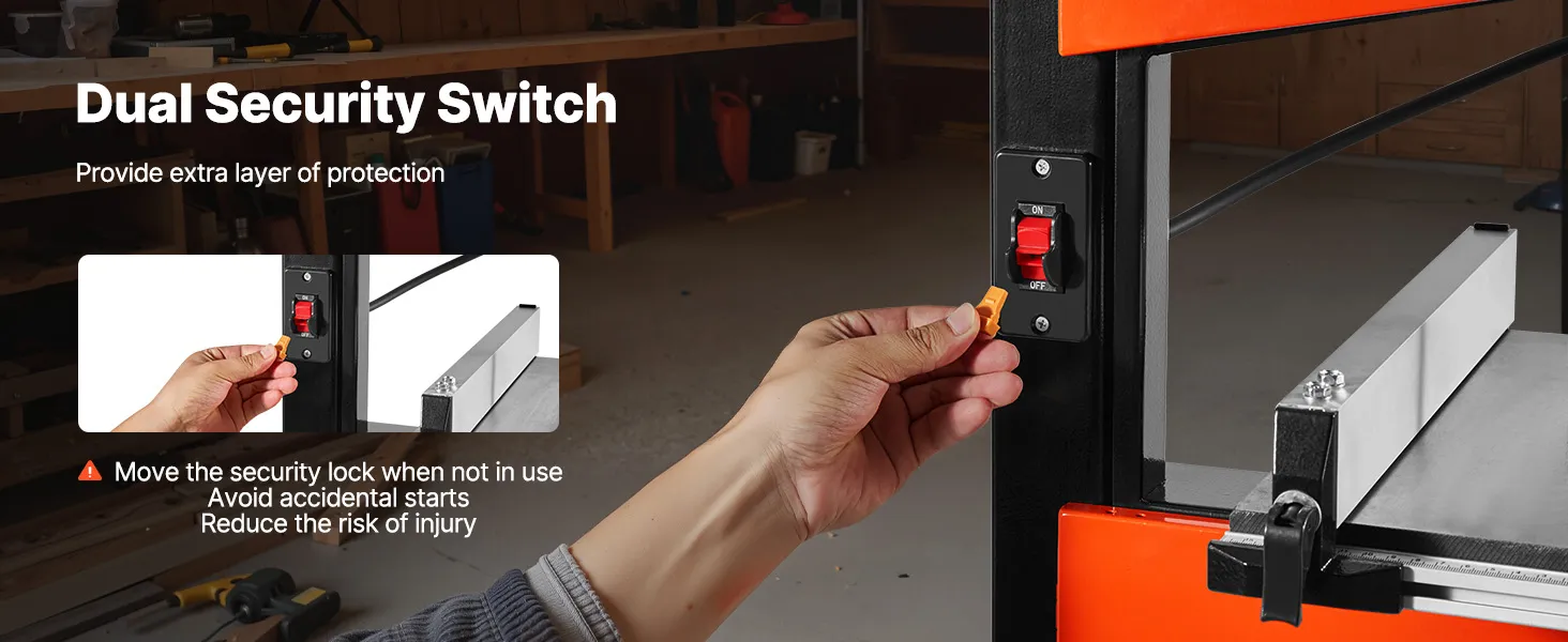 Work confidently with a dual security switch system that avoids accidental startups caused by mishandling or power fluctuations. Our tabletop bandsaw gives you a peace of mind working environment.