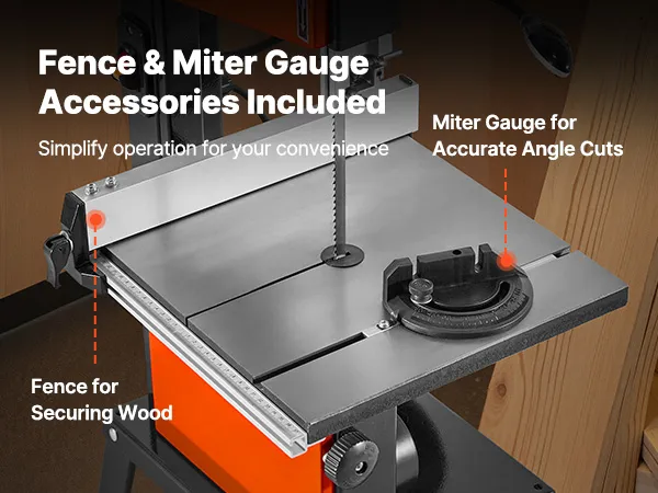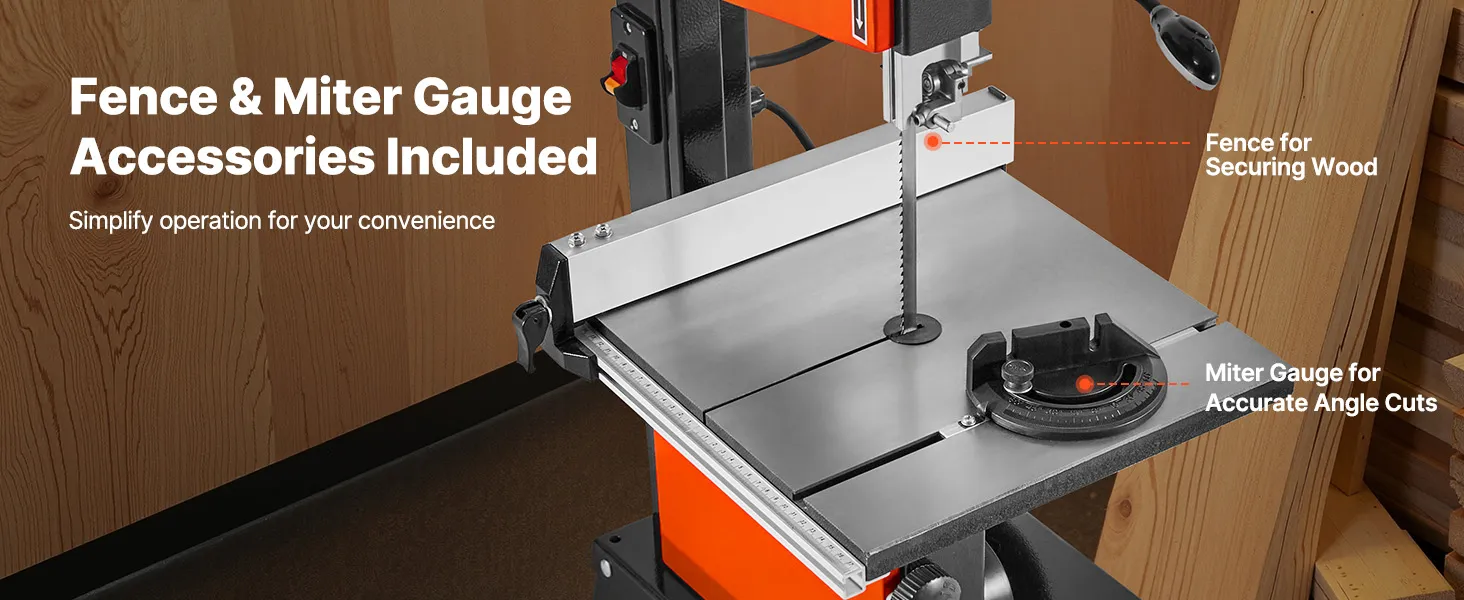 Essential Accessories Included: Comes standard with a fence and miter gauge, this wood working bandsaw boosts your cutting precision and overall efficiency for every woodworking project