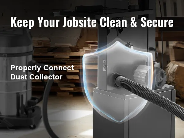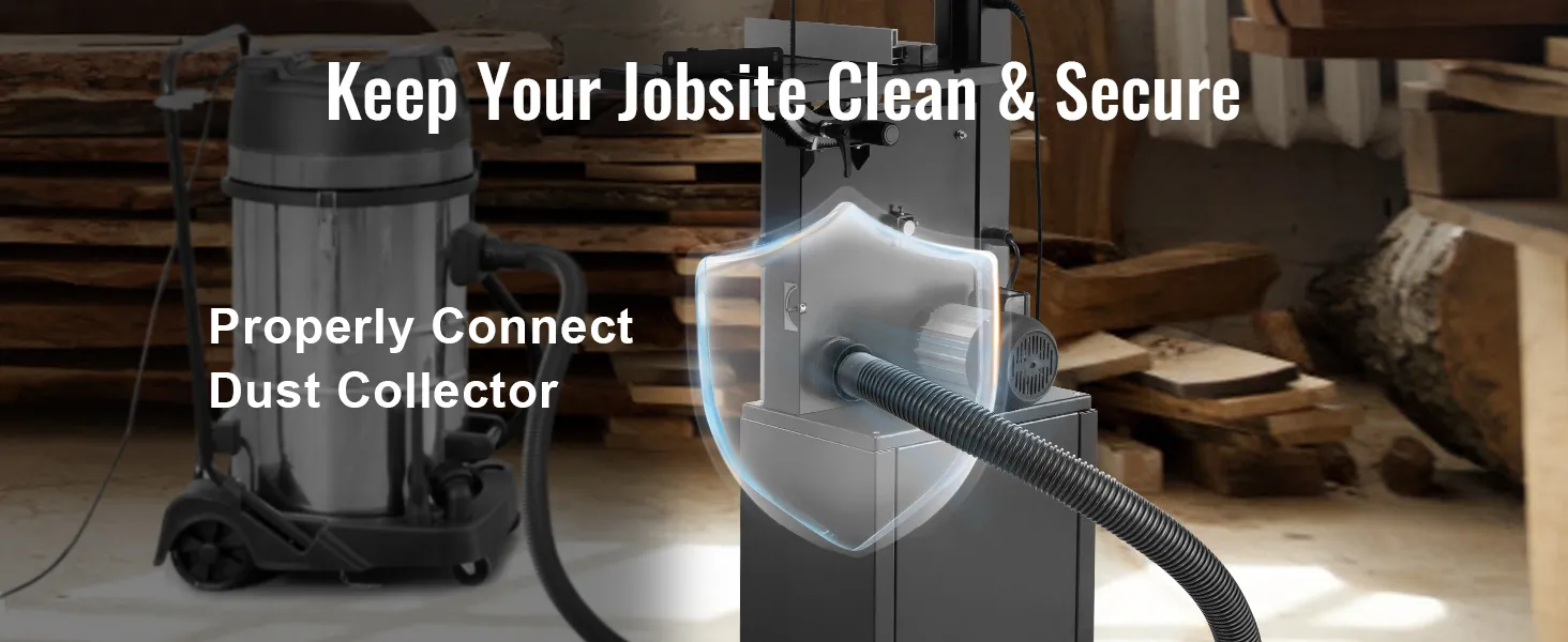 Om de werkplaats netjes te houden is onze houtbewerkingslintzaag voorzien van een stofafzuigaansluiting. Het enige wat u hoeft te doen is de stofafzuigaansluiting aan te sluiten op de stofzuigmachine en u kunt het stof opzuigen!