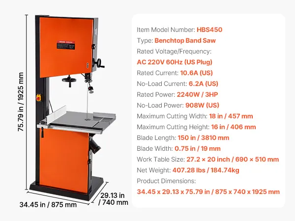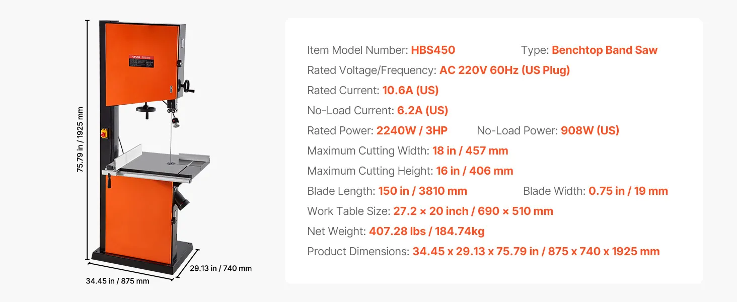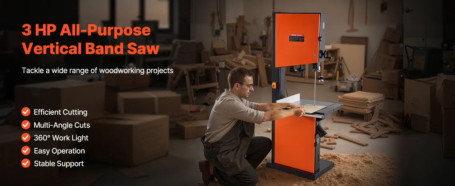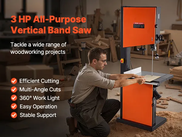 Powerful Cutting Performance: Equipped with a 3 HP/2240W power and a 150-inch blade, this woodworking bandsaw cuts up to 16 in height and 18 in width. Enjoy smooth, clean, and efficient cuts across hardwood, softwood, and more