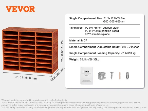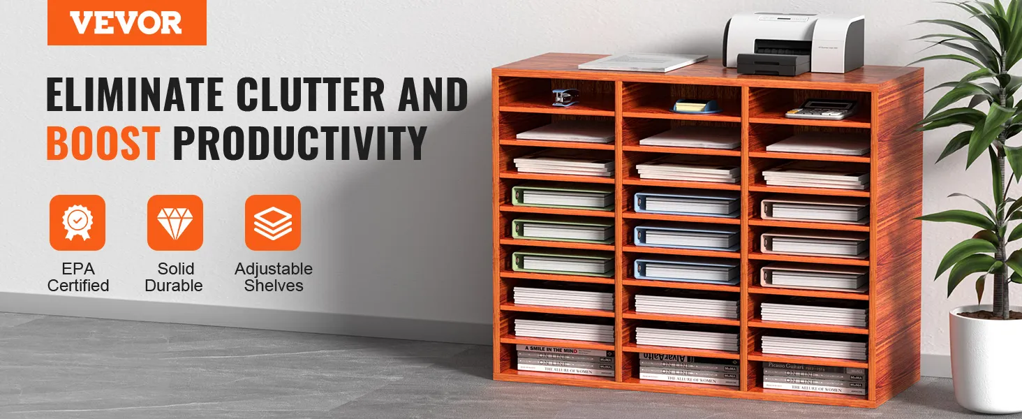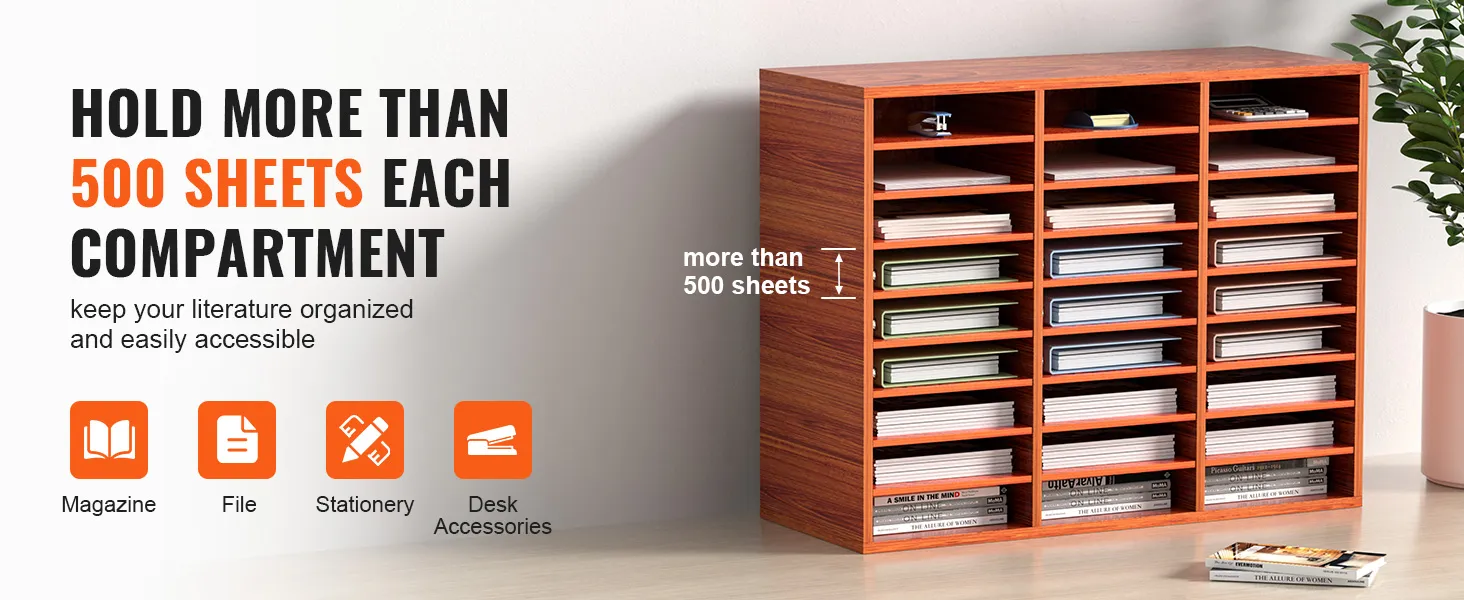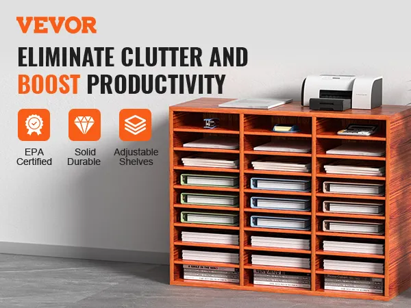 VEVOR 27 Compartments Wood Literature Organizer, Adjustable Shelves, Medium Density Fiberboard Mail Center, Office Home School Storage for Files, Documents, Papers, Magazines, Brown