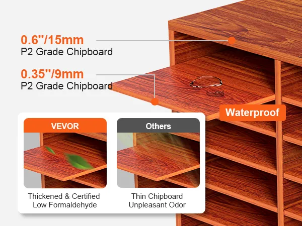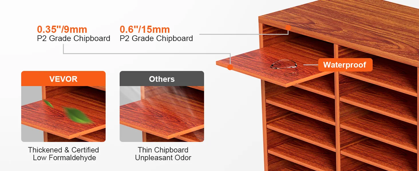 Stable & Reliable: Made of medium density fiberboard, the literature organizer features a smooth surface and is lightweight. Frame board thickness: 15 mm/0.6 in, for added durability and sturdiness of the file sorter. Shelf thickness: 0.35 in/9 mm, ensuring a heavy load-bearing capacity.