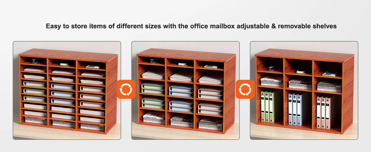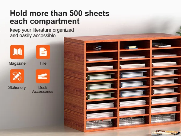 Get Back Your Space: Get ready for more than enough room! You will never run out of space again with our amazing storage compartments. There are 27 compartments in total (9 rows x 3 columns). The literature organizer can help you store and organize books, documents, magazines, papers, etc. With our mail center, you'll get a neat and organized desktop.