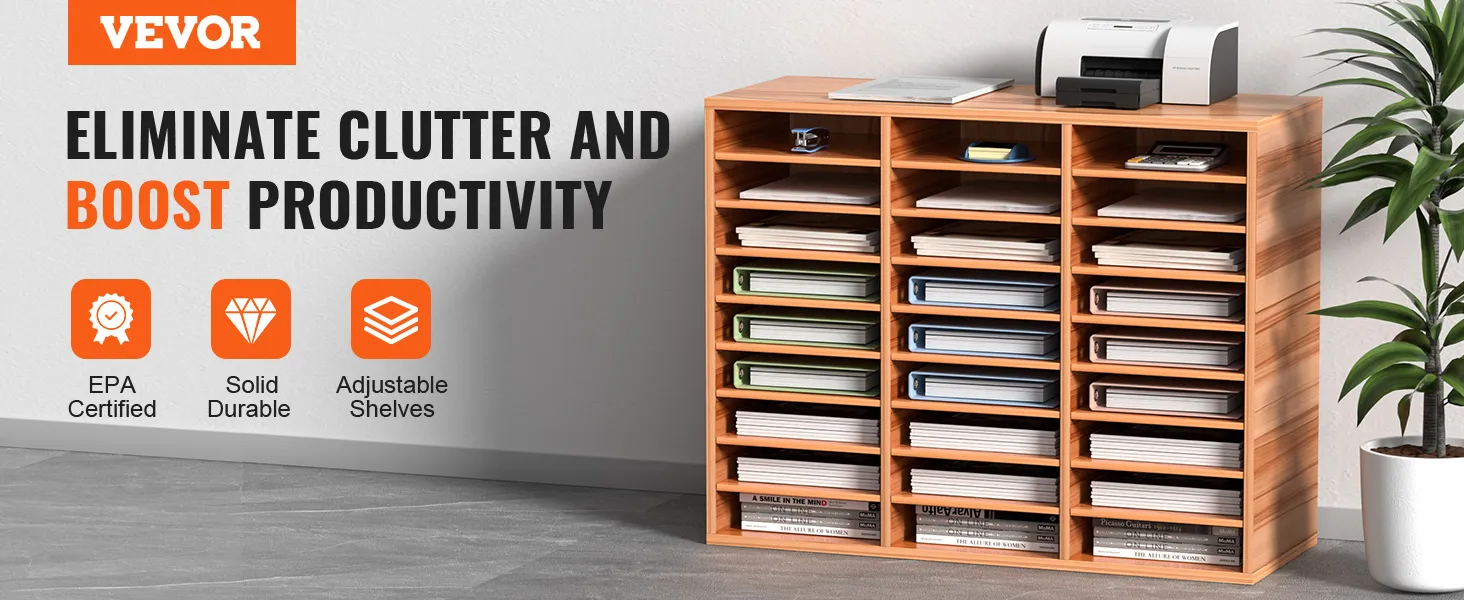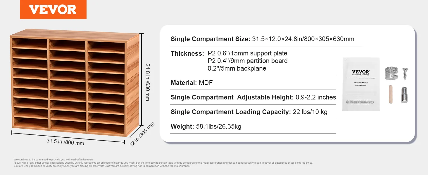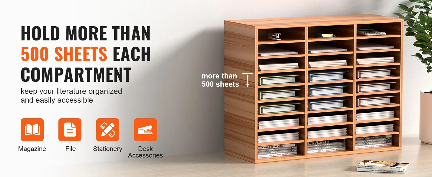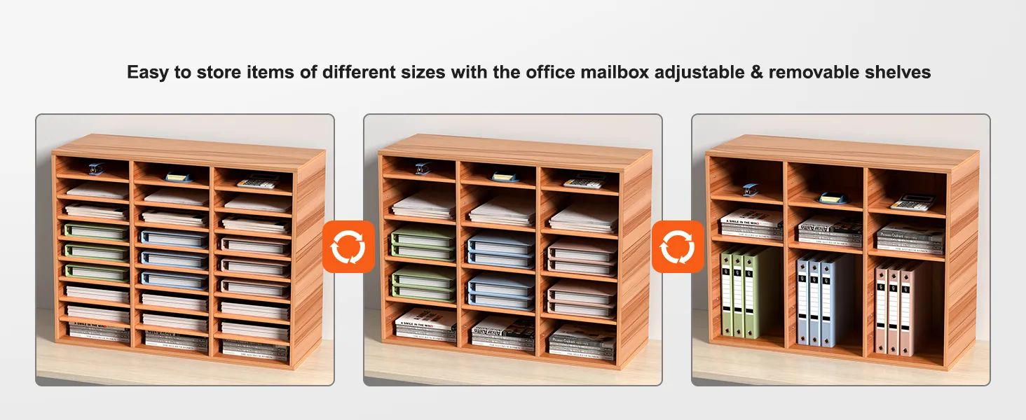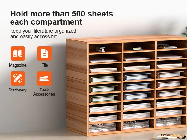 Get Back Your Space: Get ready for more than enough room! You will never run out of space again with our amazing storage compartments. There are 27 compartments in total (9 rows x 3 columns). The literature organizer can help you store and organize books, documents, magazines, papers, etc. With our mail center, you'll get a neat and organized desktop.
