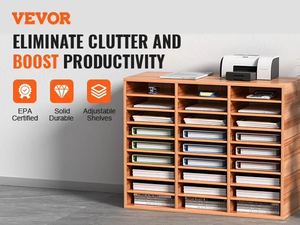 VEVOR 27 Compartments Wood Literature Organizer, Adjustable Shelves, Medium Density Fiberboard Mail Center, Office Home School Storage for Files, Documents, Papers, Magazines, White