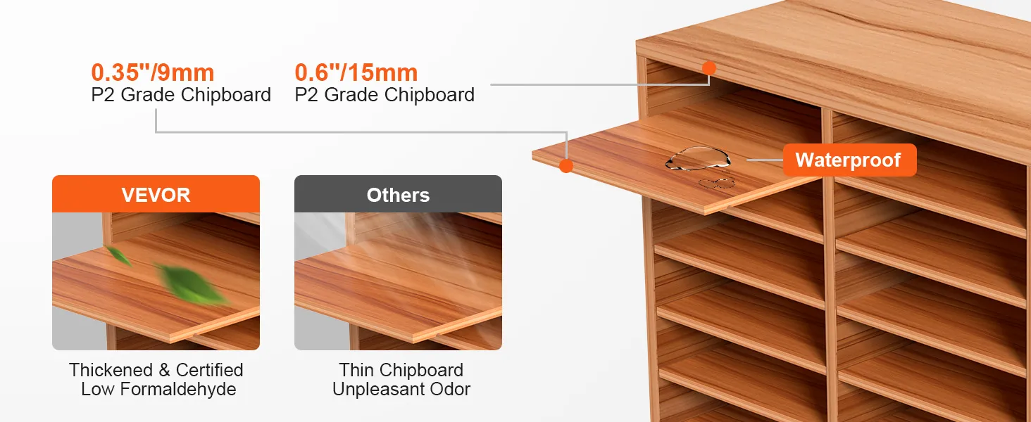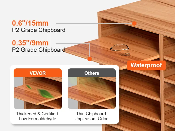 Stable & Reliable: Made of medium density fiberboard, the literature organizer features a smooth surface and is lightweight. Frame board thickness: 15 mm/0.6 in, for added durability and sturdiness of the file sorter. Shelf thickness: 0.35 in/9 mm, ensuring a heavy load-bearing capacity.