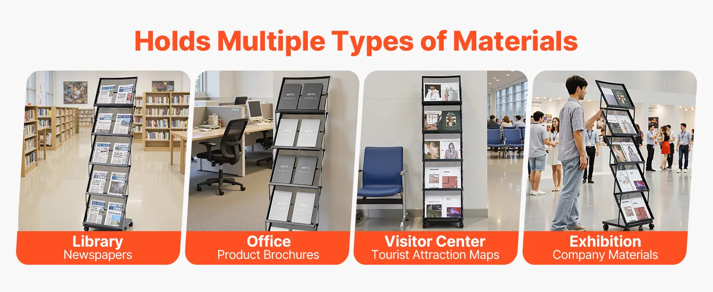 Geschikt voor het opbergen en tentoonstellen van diverse materialen, zoals documenten, brochures, tijdschriften, handleidingen, etc. Voldoet aan de eisen van diverse gebruiksscenario's en biedt voldoende ruimte om diverse materialen efficiënt te beheren en tentoon te stellen.