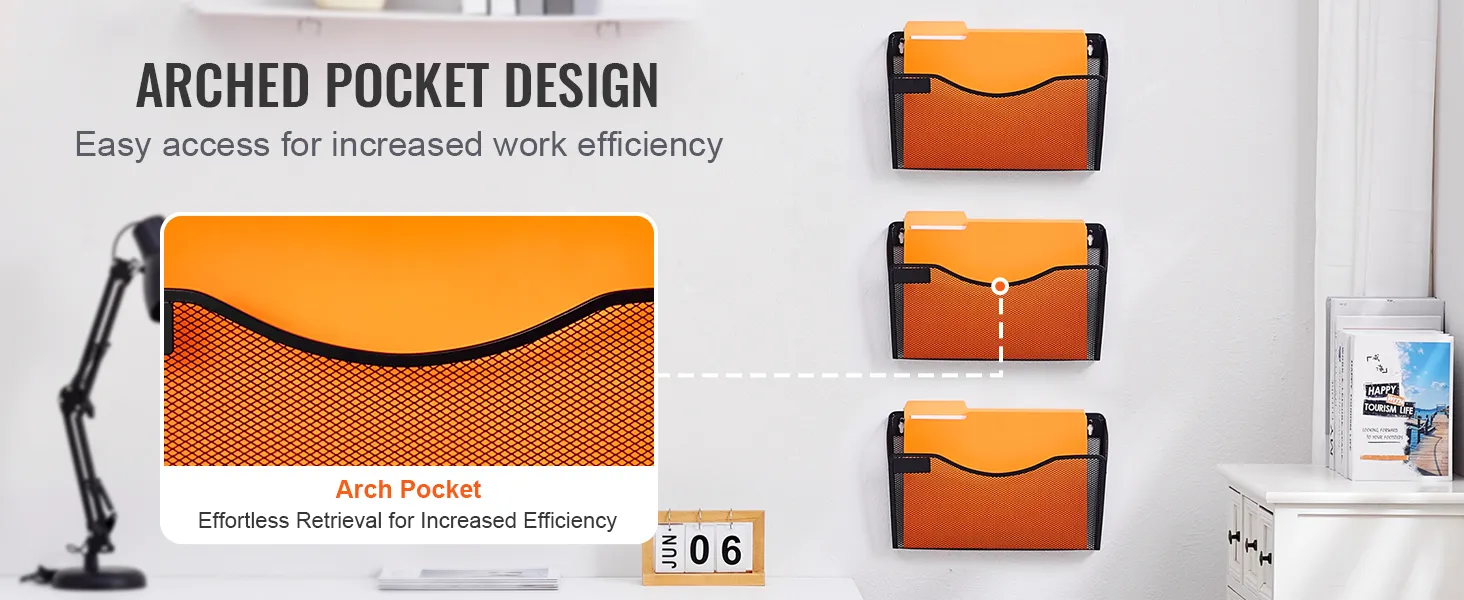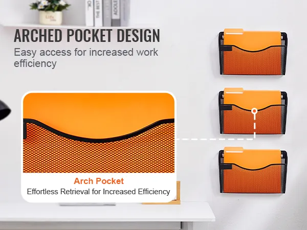 Het praktische gebogen zakontwerp van onze aan de muur gemonteerde dossiermap maakt het gemakkelijk om dossiers te hanteren, waardoor de werkefficiëntie toeneemt.
