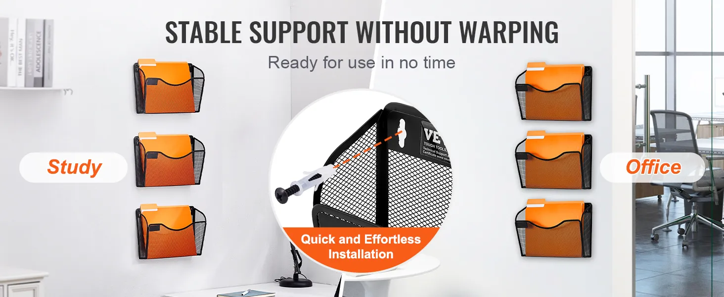 Snelle en eenvoudige montage: onze wanddocumentorganizer kan in een mum van tijd worden geïnstalleerd met slechts twee gaten - geen ingewikkelde instructies vereist. Hij past op elke muur en vereist minimaal gereedschap, zodat u zonder problemen van uw georganiseerde ruimte kunt genieten. Het is het toonbeeld van eenvoudige montage.