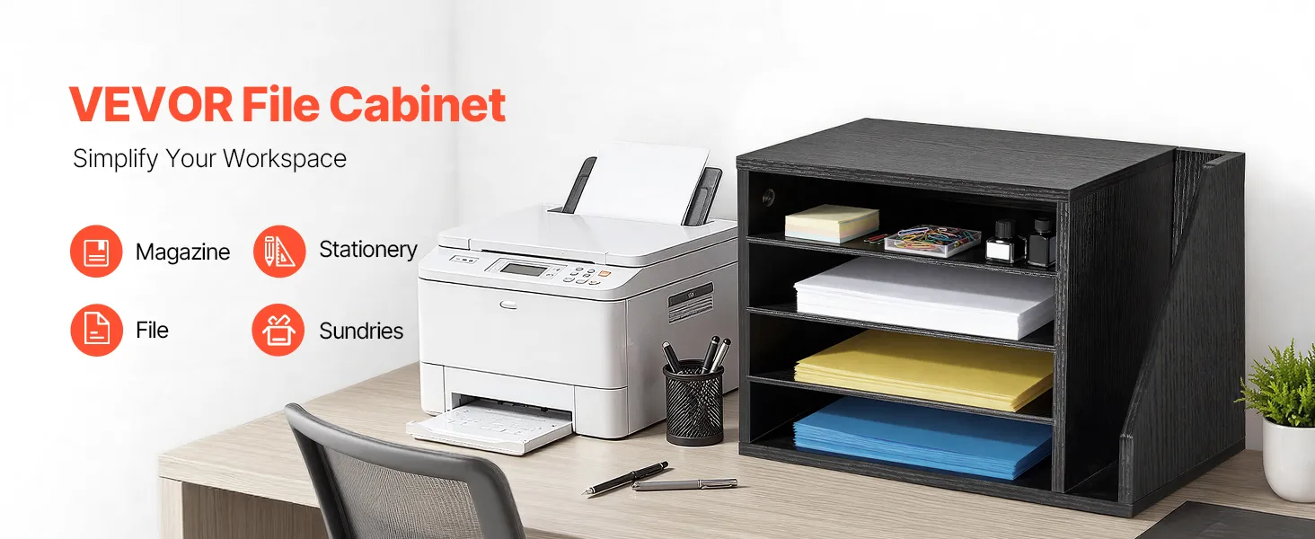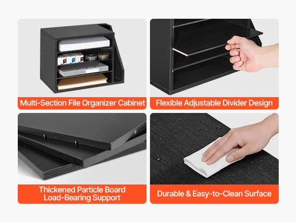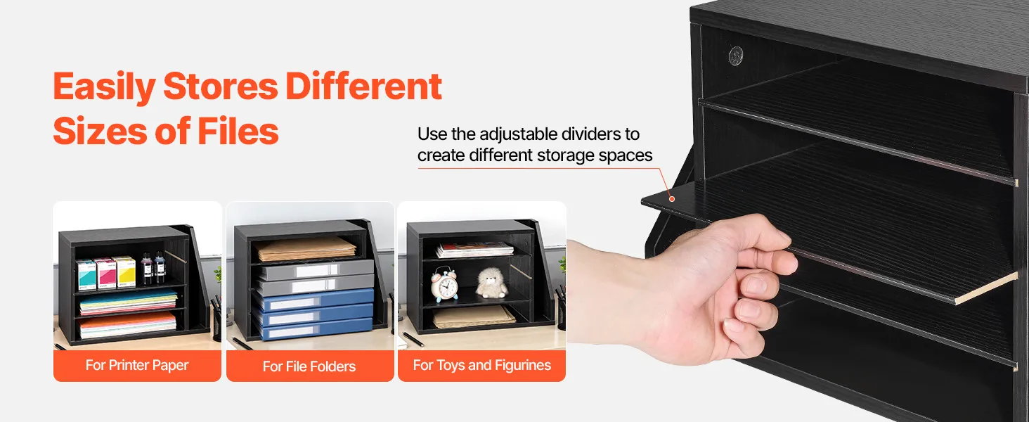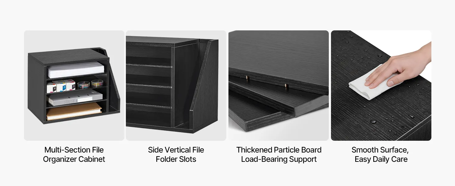 VEVOR Brievenbak met 4 vakken en uitneembare planken, houten documentenbak met dossierhouder, dossierorganizer voor kantoor en klaslokaal, opbergbak voor dossiers, documenten en papier, zwart