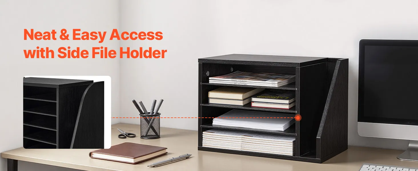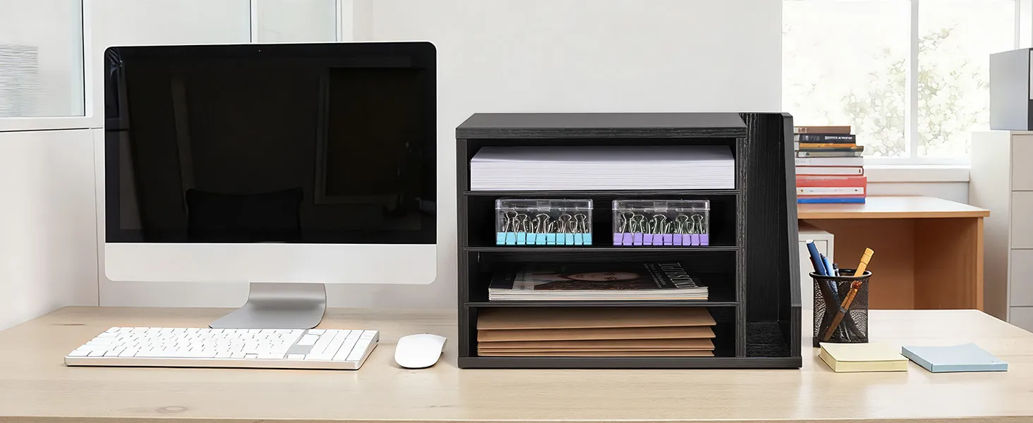 Optimaal ruimtegebruik: Deze brievenbak zorgt voor een overzichtelijke werkplek en biedt voldoende opbergruimte voor boeken, documenten, tijdschriften, papier en andere materialen, zodat het bureau er netjes en opgeruimd uitziet.
