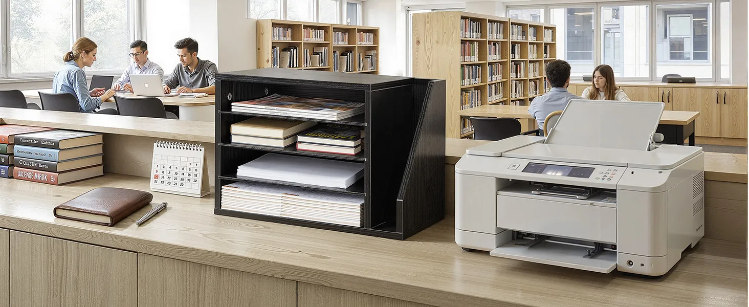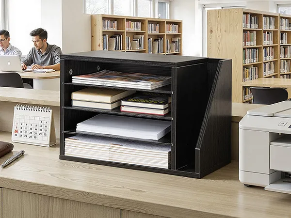 Een boekenorganizer voor meer orde en ruimte op de werkplek.