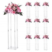 VEVOR 10-delige 55 cm hoge kristallen glazen bloemenstandaard voor bruiloften, metalen vaas voor bruiloftsdecoraties, gouden bloemenhouders, bloemenstandaards voor tafels, bruiloftsdiners, feesten, ceremonies, verjaardagsfeesten