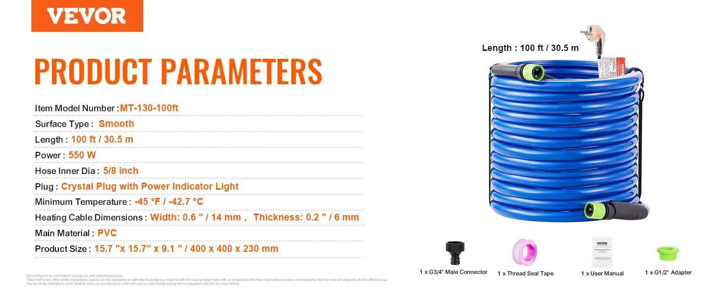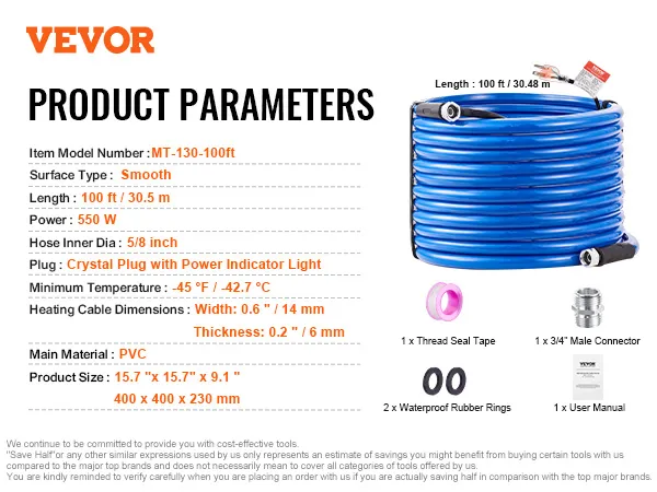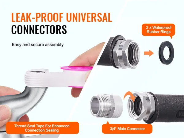 We prioritize preventing leaks at the heated water hose connectors. Equipped with a thread seal tape, the connectors are easy to install and effectively prevent leaks.