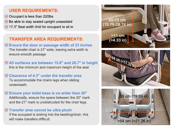 Enhanced Safety Features: Built with high-strength steel, this sturdy transfer lift chair for seniors supports a maximum weight of 220 lbs. It comes with a comfortable PU backrest and seat lock for added support and safety during transfers. Plus, the locking swivel casters provide extra safety during transport.