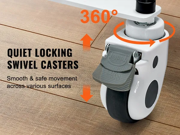 The patient lift transfer chair features quiet, locking swivel casters that rotate 360 degrees, allowing smooth and safe movement across various surfaces, such as wood and tile, ensuring reliable performance in different environments.