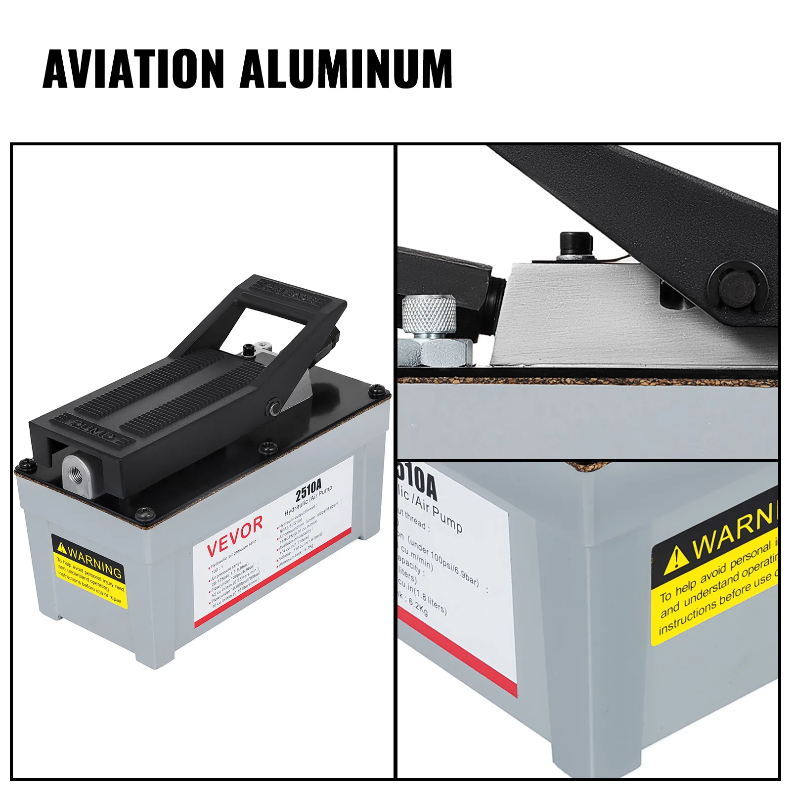 Deze elektrische hydraulische pomp heeft een aluminium behuizing voor vliegtuigen, een pompkern van hoge kwaliteit en een hogedrukolieleiding, lichtgewicht, corrosiebestendig en duurzaam. Het gebruiksvriendelijke, voetbediende ontwerp maakt deze hydraulische pompen tijd- en moeitebesparend en eenvoudig te bedienen. Dankzij het 2-traps trekkermechanisme wordt deze voetpomp veel gebruikt in de auto-industrie.