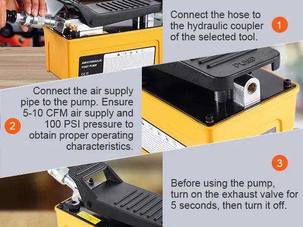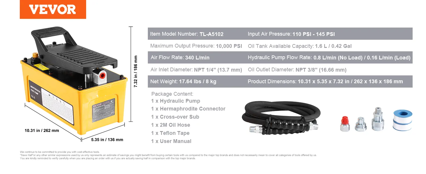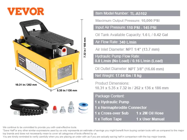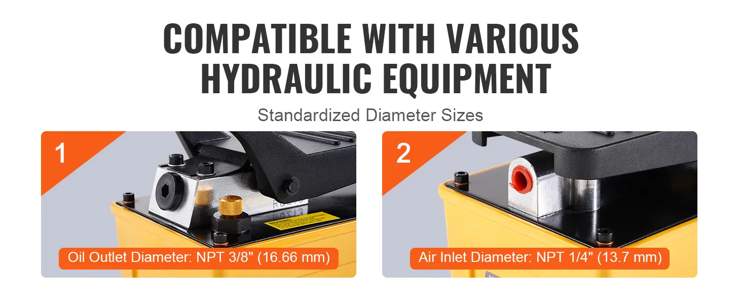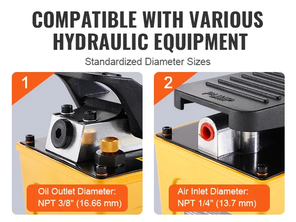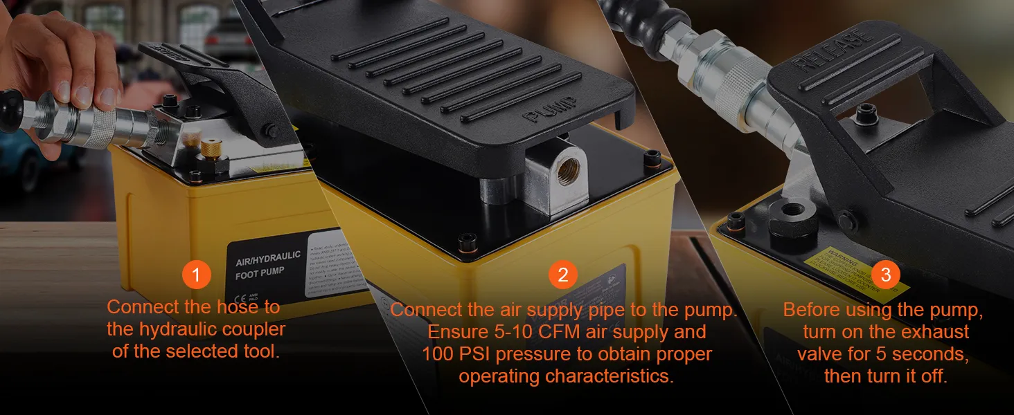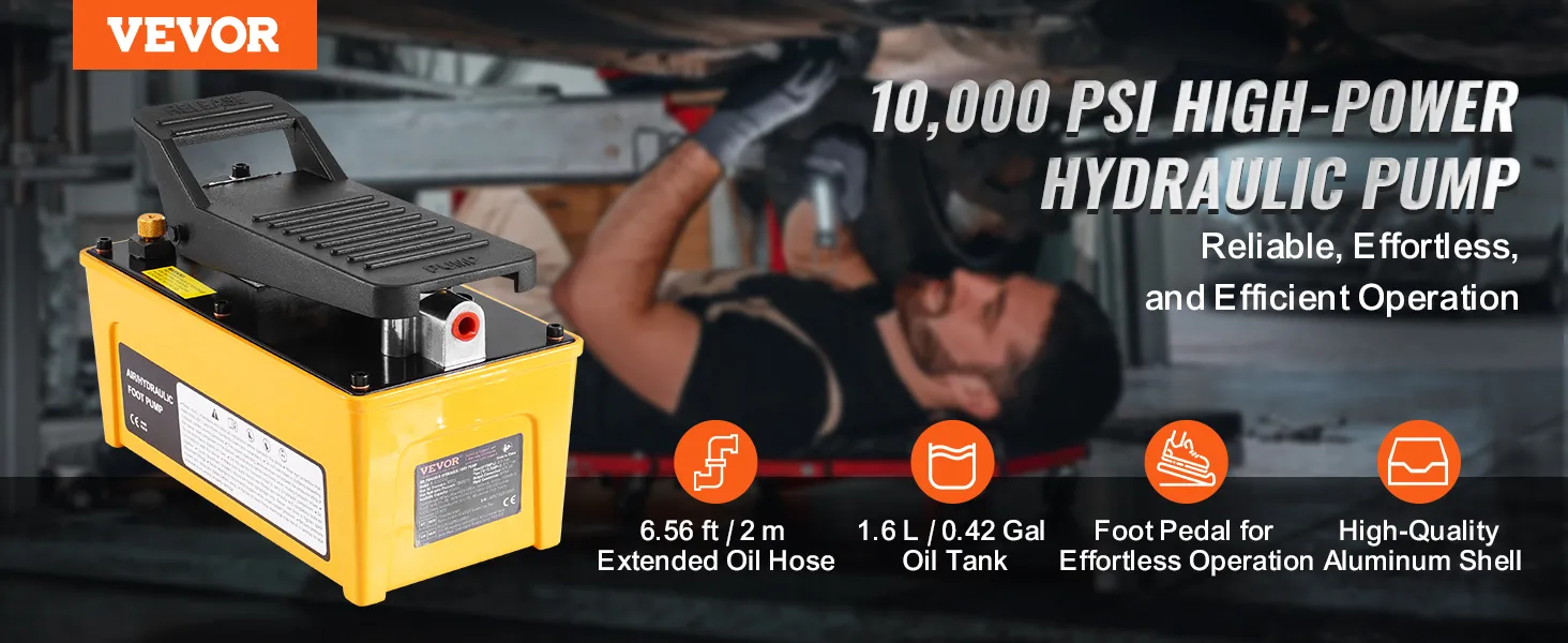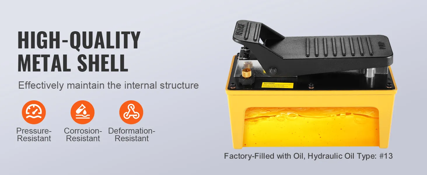 Effortless Foot Operation: The foot-operated air hydraulic pump includes hydraulic oil-no extra purchases are needed. Press down to build pressure and release quickly, making your job more straightforward and efficient.
