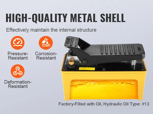 The hydraulic foot pump’s rugged outer shell protects the internal components like a champ. It’s pressure-resistant, corrosion-resistant and deformation-resistant in tough conditions. Factory-filled with hydraulic oil (#13), it ensures efficient, secure, and durable hydraulic operation.
