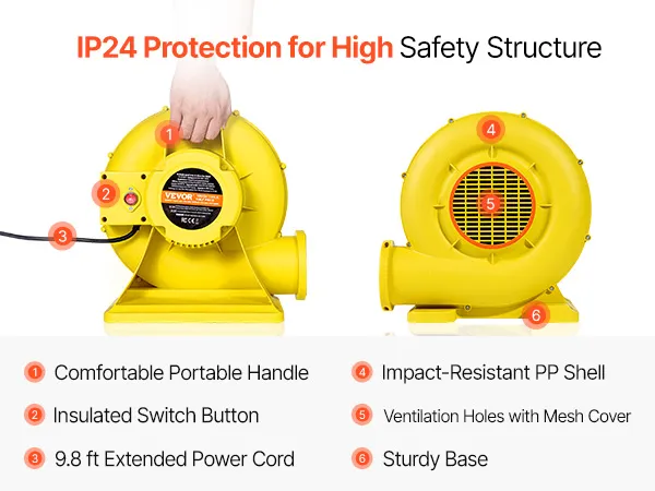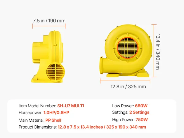 Voeg plezier en sfeer toe aan uw buiten- of binnenevenementen met deze veelzijdige luchtblazer, ontworpen om verschillende opblaasbare modellen op te blazen. Het werkt continu zonder oververhitting en biedt twee vermogensinstellingen voor uw comfort.