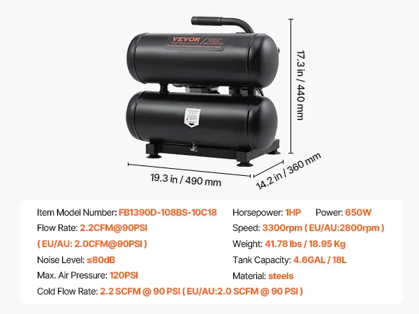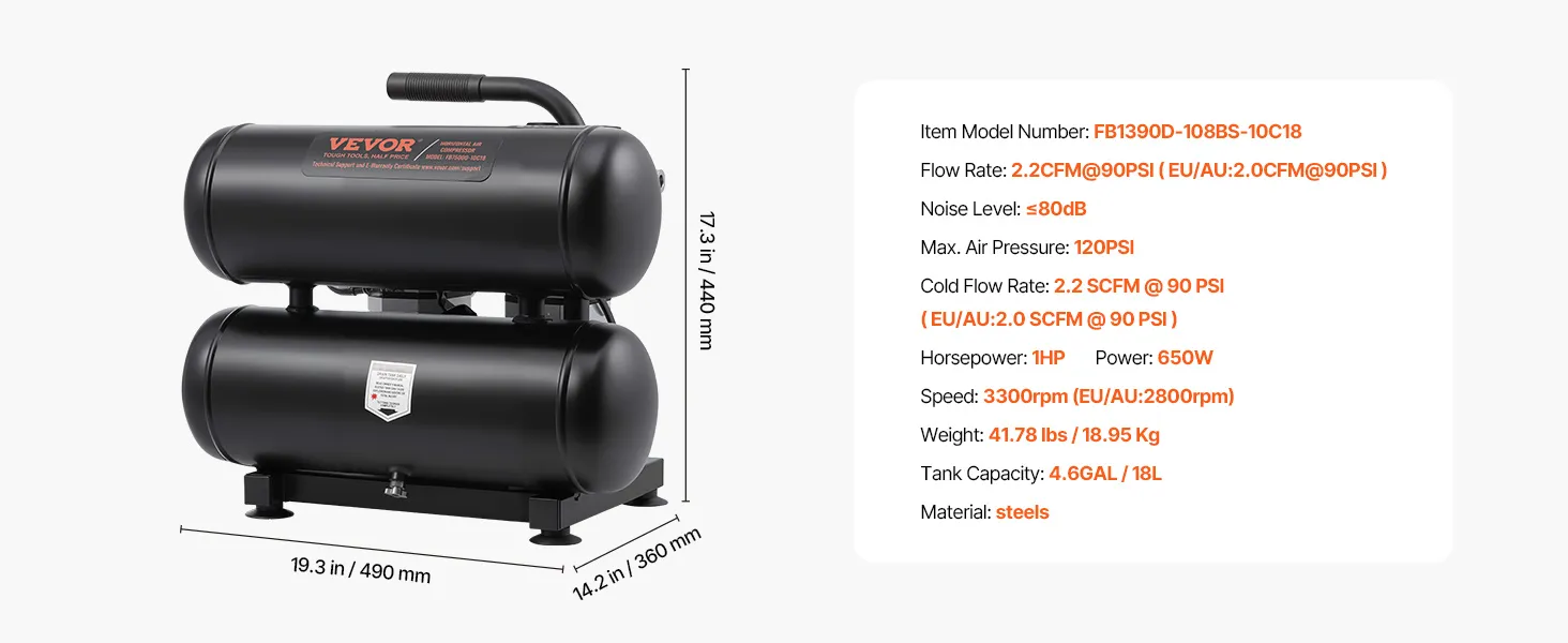All the Power, Without the Noise: Our 80 dB low decibels ultra quiet air compressor is built with quality silencer. Each muffler consists of a thickened muffler cover, rubber muffler pipe, and filter cotton. It not only reduces noise, but effectively prevents fine dust from entering.