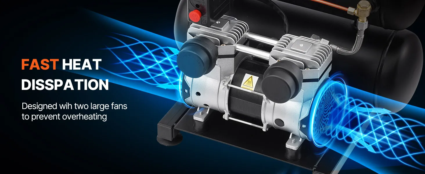 Featuring an advanced rapid cooling design, this ultra quiet compressor effectively reduces operating temperature and extends equipment lifespan. Its efficient cooling system ensures stable performance during long continuous work, preventing shutdowns and damage due to overheating.