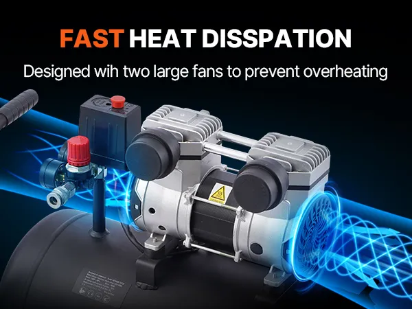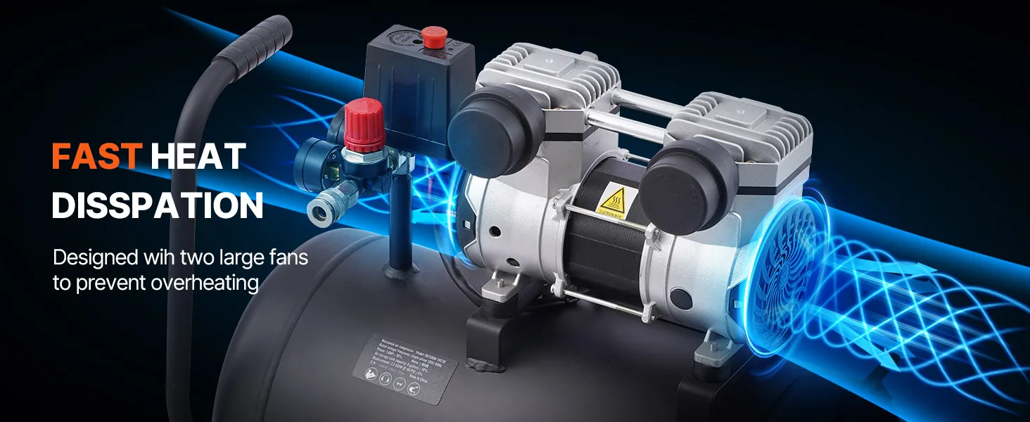 Featuring an advanced rapid cooling design, this ultra quiet compressor effectively reduces operating temperature and extends equipment lifespan. Its efficient cooling system ensures stable performance during long continuous work, preventing shutdowns and damage due to overheating.