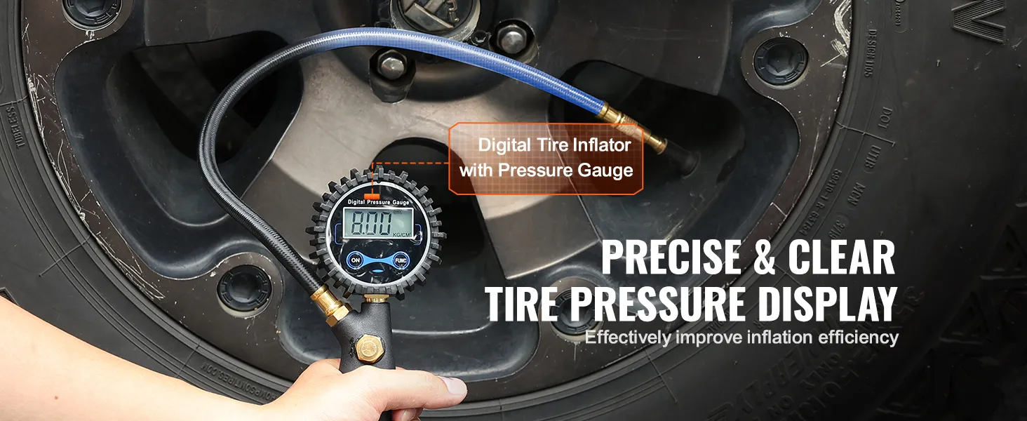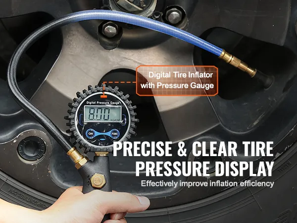 Verbeterd gemak: met deze digitale bandenpomp met manometer hoeft u alleen maar de trekker ingedrukt te houden om het oppompen te starten en los te laten om het te stoppen. Dit maakt efficiënt opblazen en realtime drukmonitoring mogelijk zonder dat u de schakelaar van de luchtcompressor herhaaldelijk aan en uit hoeft te zetten.