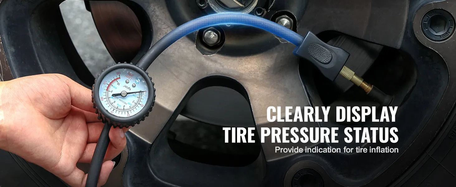 Compleet pakket: Inclusief een robuuste luchtcompressor + 2 m netsnoer + 8 m rubberen luchtslang met mechanische manometer + 3 mondstukadapters + duimvergrendelingsadapter + draagbare gereedschapstas. Altijd klaar voor roadtrips!