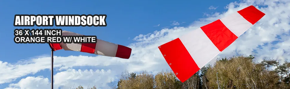 36 x 144 inch Airport Windzak Oranje-Rood met Wit
