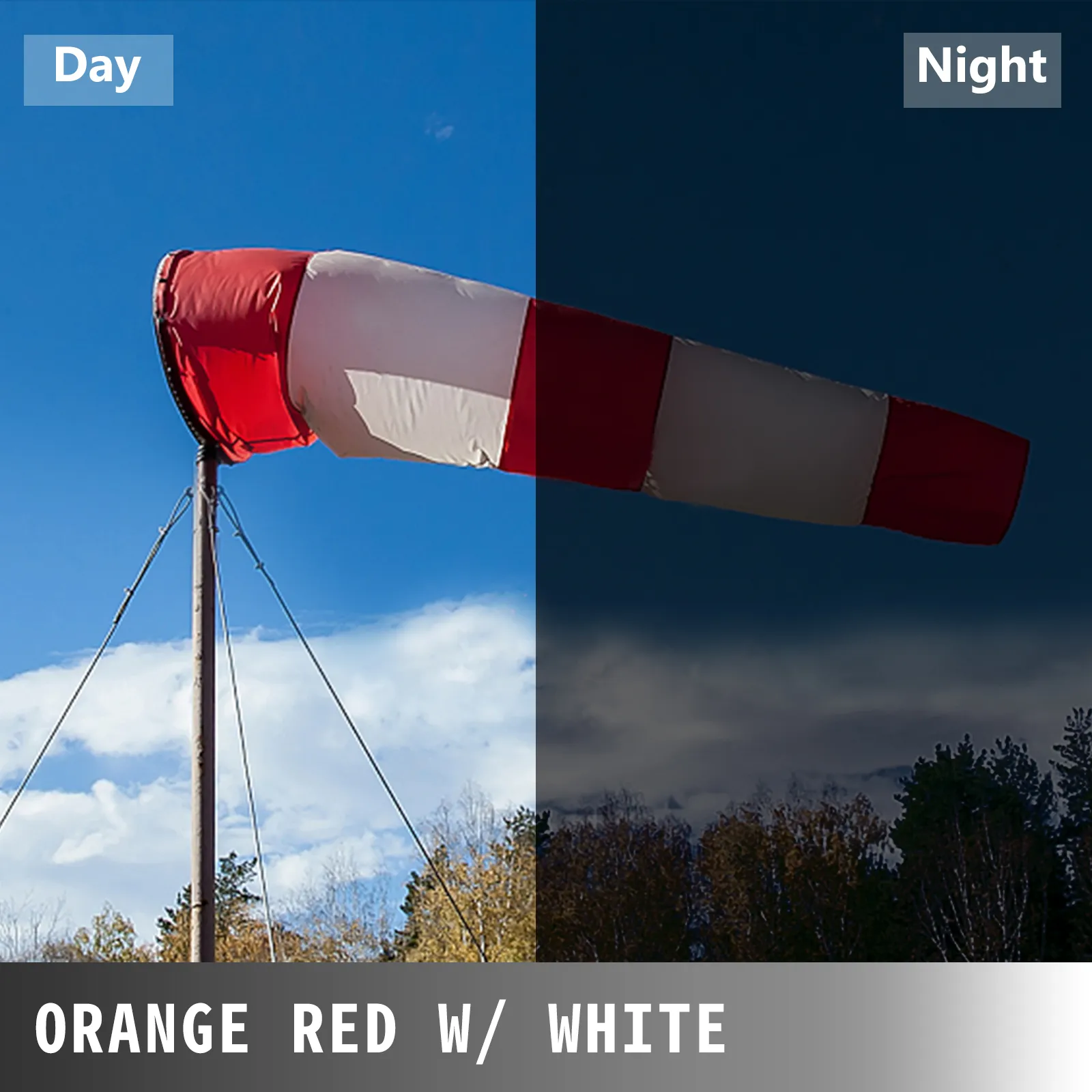 Onze luchtvaart windzak heeft een zichtbaar uiterlijk met een zichtbaar oranje, rood en wit kleurontwerp. De kleur is 's nachts te zien met slechts een beetje licht.