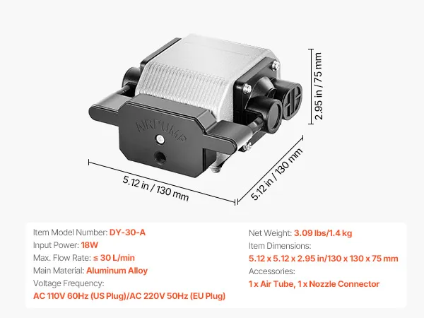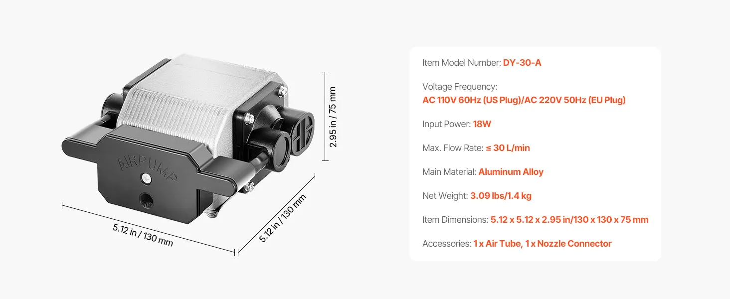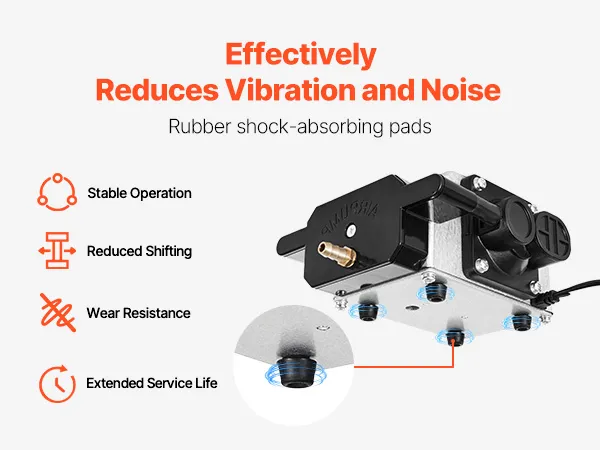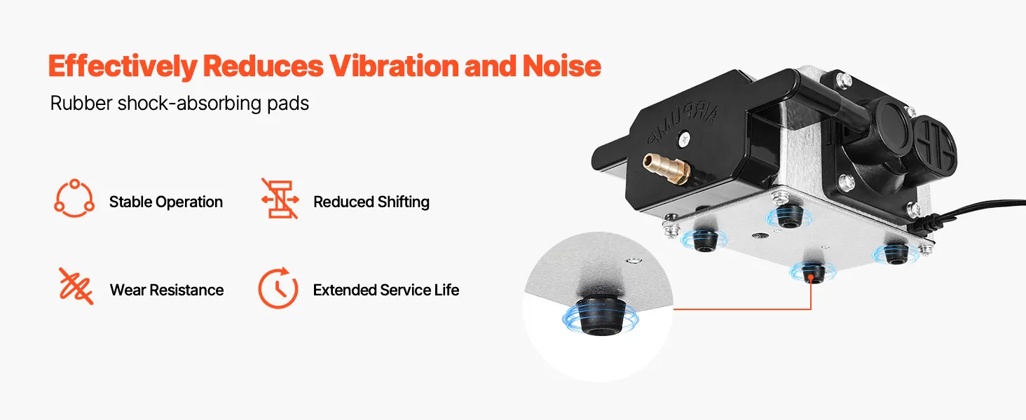 This air assist pump kit is designed with rubber feet to run quietly and provide a steady base, ensuring your device stays in place, reducing wear and lasting longer.