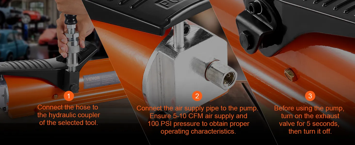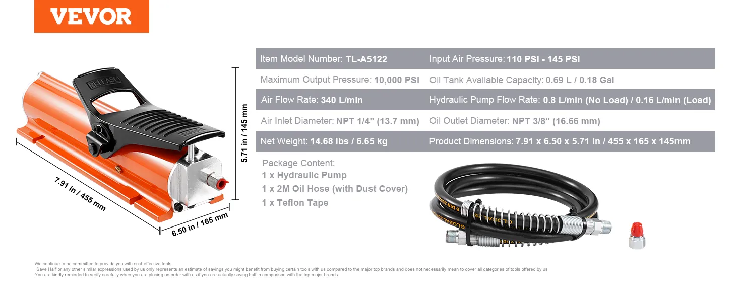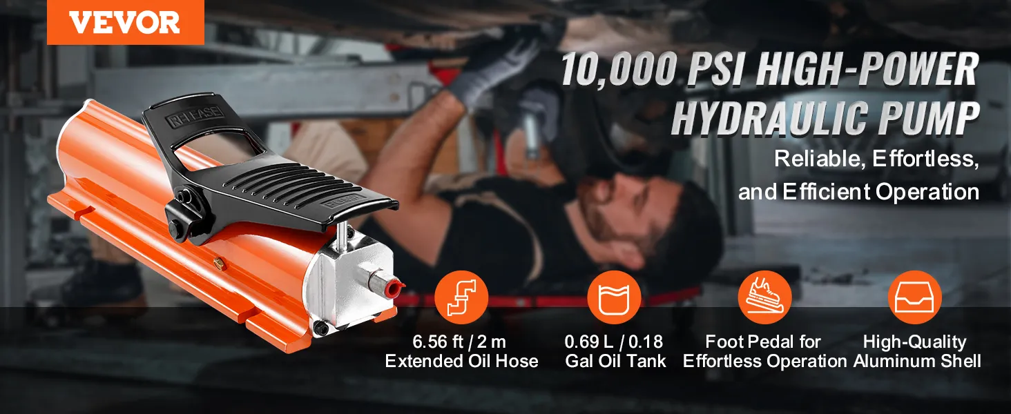 Moeiteloze voetbediening: de voetbediende luchthydraulische pomp bevat hydraulische olie - geen extra aankopen vereist. Druk naar beneden om druk op te bouwen en laat deze snel weer los, waardoor uw werk eenvoudiger en efficiënter wordt.