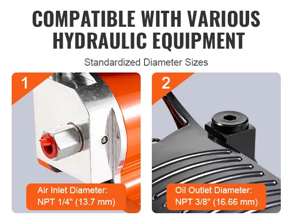 In de fabriek gevuld met olie: Deze luchthydraulische pomp wordt geleverd met een grote tank van 0,69 liter die in de fabriek is gevuld met hydraulische olie (#13), zodat u onmiddellijk kunt beginnen met werken. Deze functie vermindert de installatietijd en -inspanning. Het heeft een 1/4 inch NPT luchtinlaat en een 3/8 inch NPT hogedrukuitlaat.