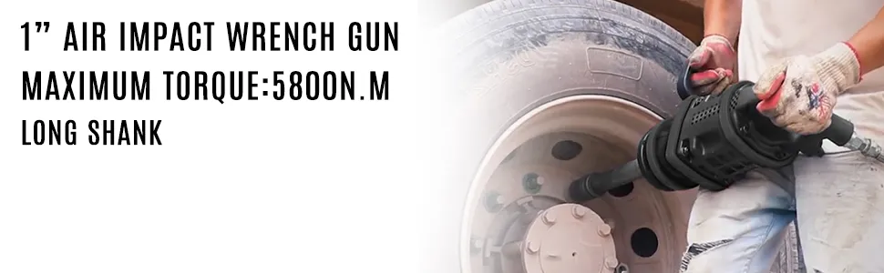 【5800NM AIR IMPACT WRENCH】- 175PSI maximale luchtdruk. Nominaal toerental van 3400 tpm Maximaal koppel van 5800 Nm. Dit 1" luchtinslagpistool heeft een 1/2" (ca. 12,7 mm) luchtinlaat, een 1/2" luchtslang is vereist. Onderhoudsbehoeften in een huisgarage of reparatiewerkplaats.