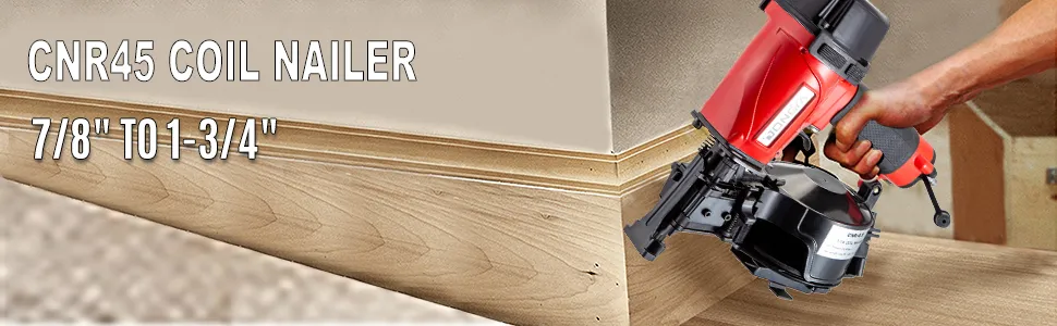 【VERPLICHT NAIL & 22-45MM】 - Dit gevelbeplating nailer aanvaardt 7/8" tot 1-3 / 4" volledig hoofd coil dakbedekking nagels voor verschillende toepassingen. De werkdruk is 75-120 PSI, wat snel en continu spijkeren kan ondersteunen.