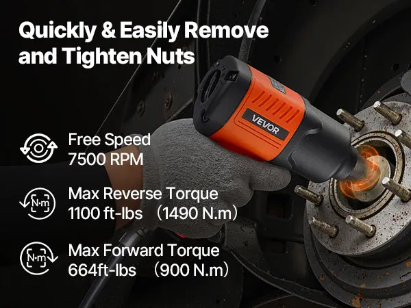 Eenvoudige koppelregeling: Dit luchtdrukpistool is uitgerust met een koppelinstelling met 4 standen (3 versnellingen vooruit, 1 versnelling achteruit) en een vooruit-/achteruitschakelaar. Hiermee kunt u eenvoudig van stand wisselen en het koppel aanpassen voor verschillende autoreparatietaken.